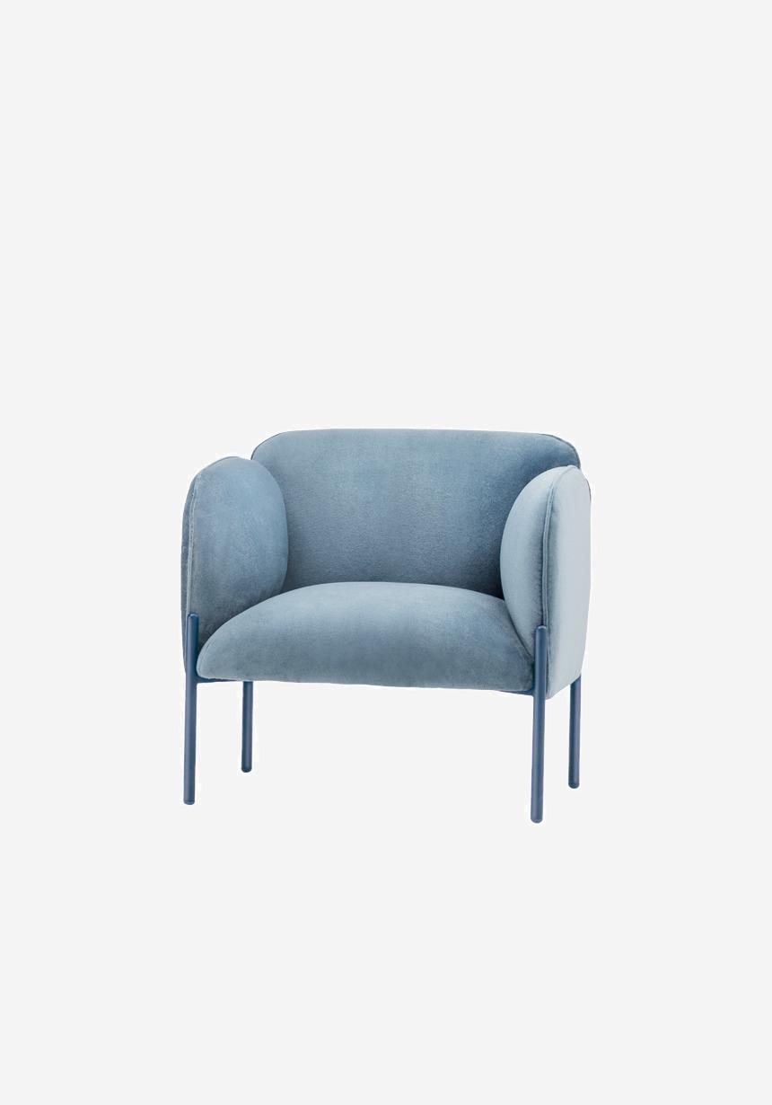 Frida di Matteo Zorzenoni è un sistema modulare dalle forme morbide e armoniose, con cui si progettano poltroncine e divanetti. Il dettaglio del cordolo, cucito tono su tono con il rivestimento, ne definisce la silhouette, con una cura che ricorda quella degli imbottiti domestici. Le gambe metalliche, disponibili in una varietà di colori, si innestano nei braccioli, esaltandone il design raffinato.